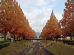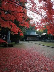山口護国神社は日清戦争以降、山口県出身の英霊が眠り、現社地の南、国道9号線を挟んだ南に桜畠練兵場(現在の陸上自衛隊訓練場)において、盛大な招魂祭を斎行したことに始まる。昭和16年(1941)に社殿を創建、5万柱におよぶ御霊を祀っている。なので、歴史に名を残した大村益次郎や久坂玄瑞、高杉晋作、吉田松陰なども祀られていて、鳥居右手には招魂碑や飛行機のプロペラ、兵士の銅像が安置され、モミジが真っ赤に“彼ら”を照らしている。